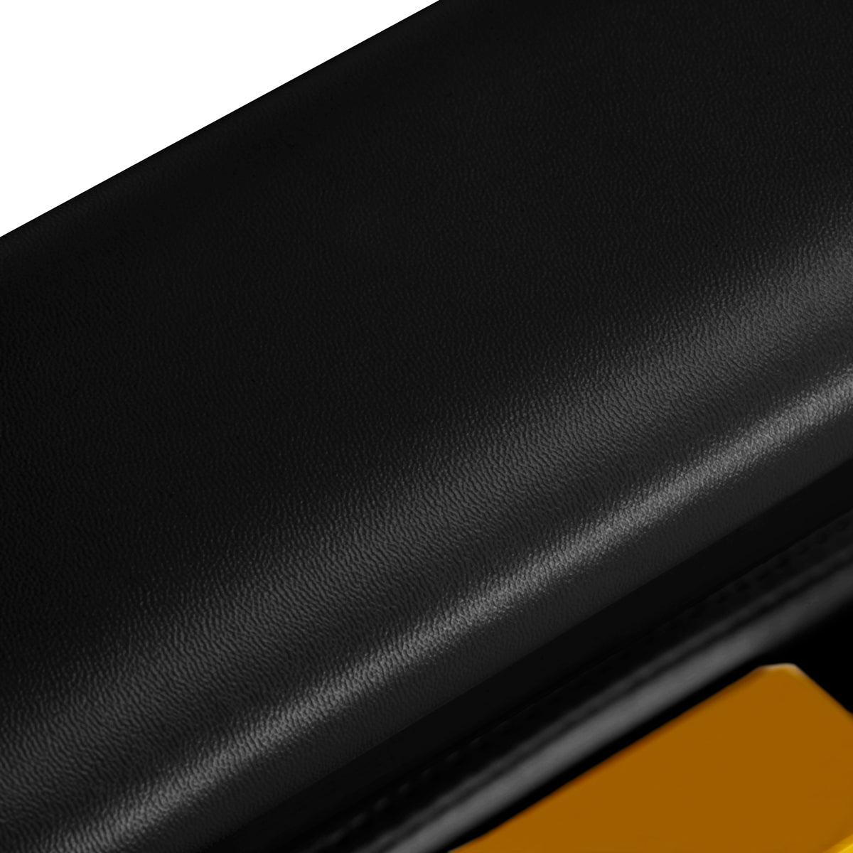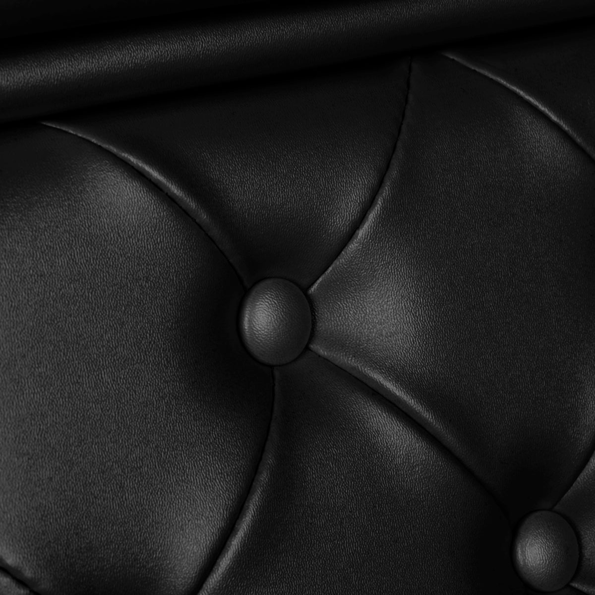 • Duurzame bekleding van zwart eco-leder met stijlvolle getufte knopen.